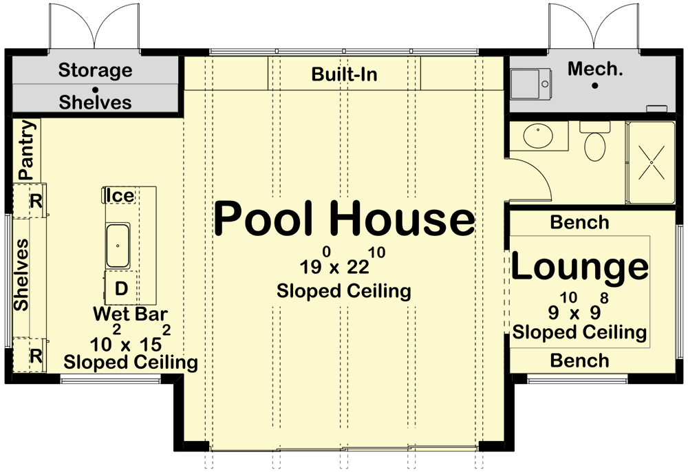 - The rear of the pool house has two separate storage spaces for all of the equipment needed to run the best pool house.