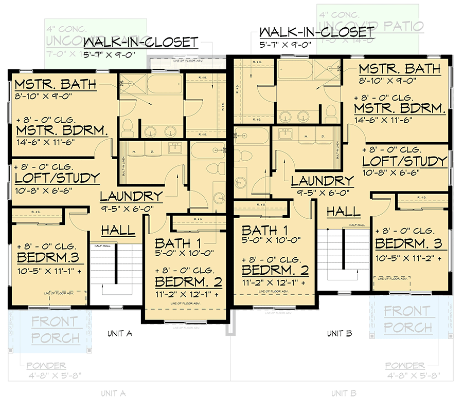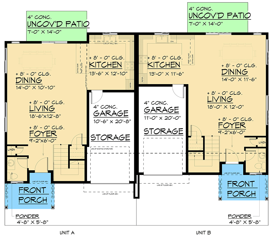 - Unit B gives you 1,725 sq ft of living (759 sq ft on the main floor and 966 sq ft on the second floor).